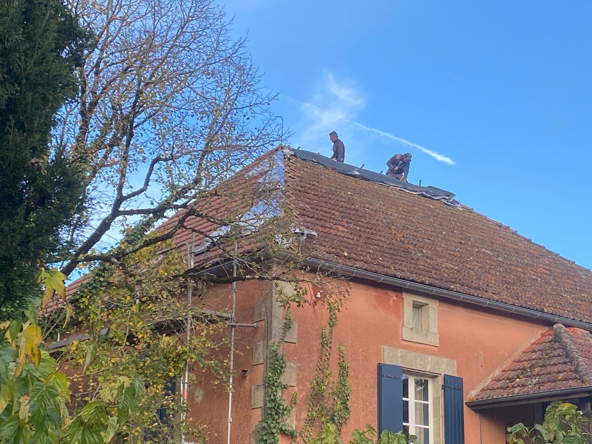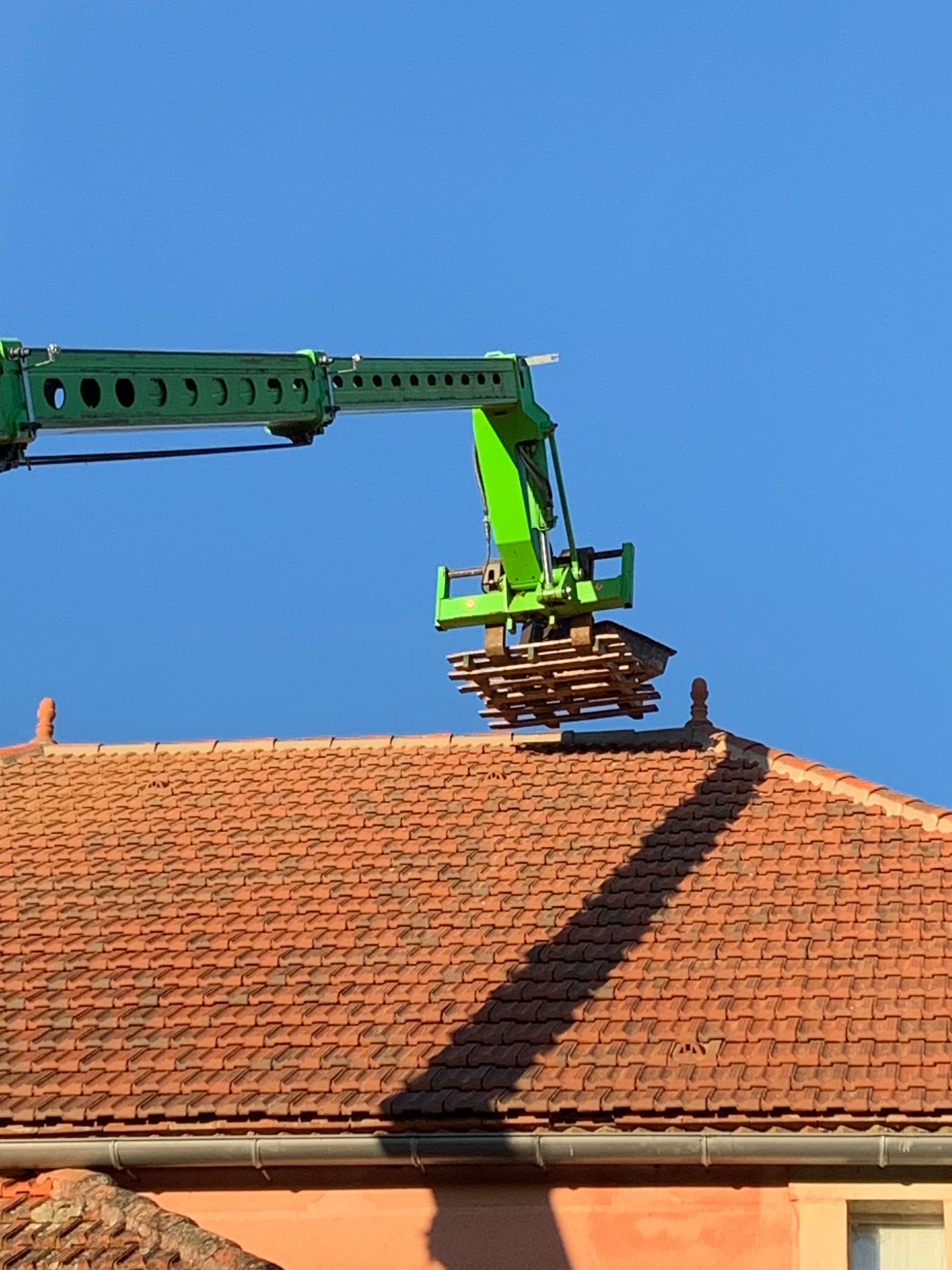 Wat je dan jarenlang bezighoudt, wordt in no-time gerealiseerd. Als ik op een maandagochtend terugkom van een doktersafspraak, zijn de steigers al geplaatst en is een groot deel van de oude dakpannen al naar beneden gehaald en afgevoerd.