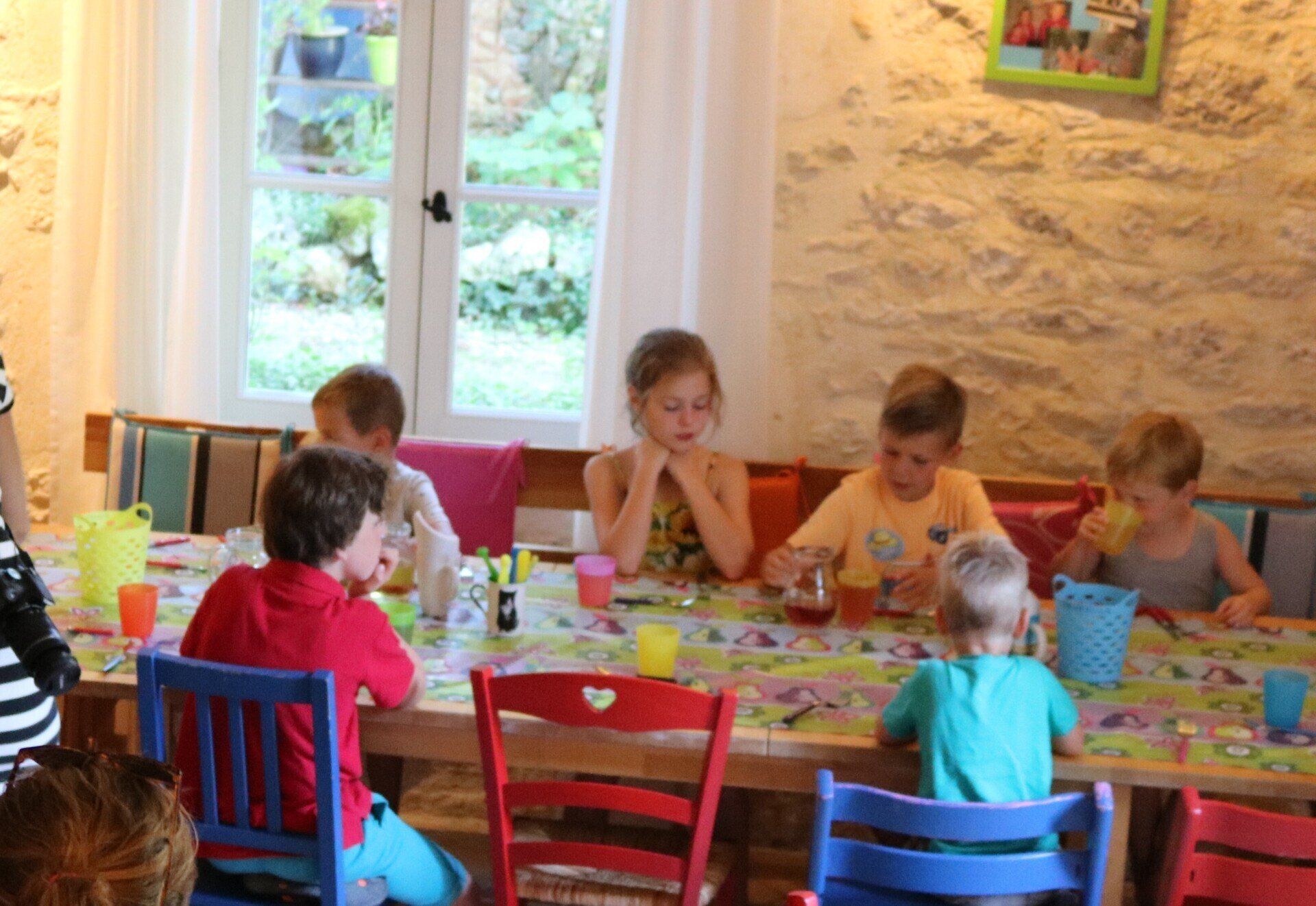 Plusieurs fois par semaine, en fonction de la période de votre séjour chez nous, nous vous proposons la table d'hôtes: un dîner pour les enfants, suivi d'un repas en présence de tous les invités. Une soirée en bonne ambiance, des plats délicieux, une fin digne d'une belle journée de vacances.