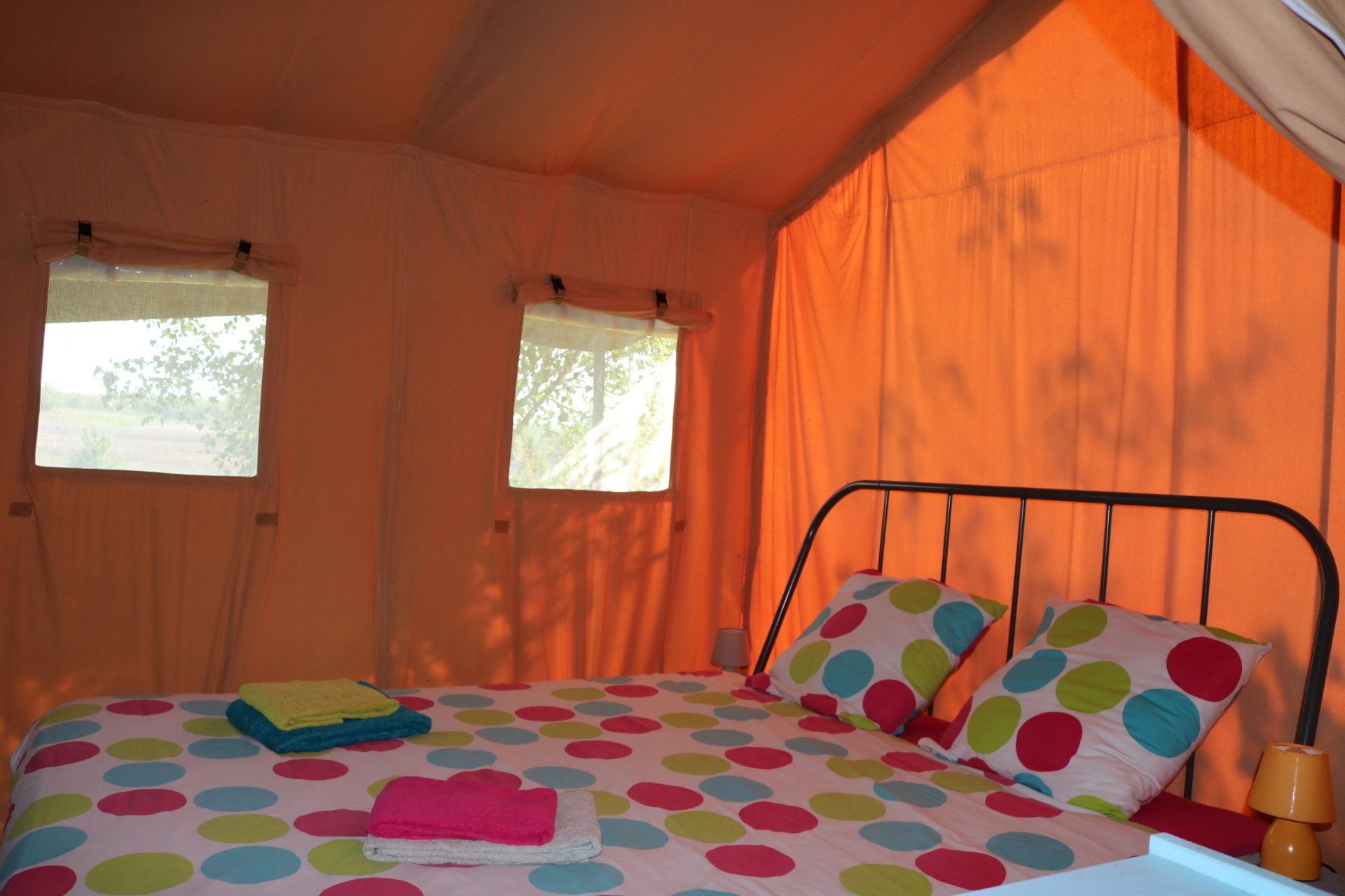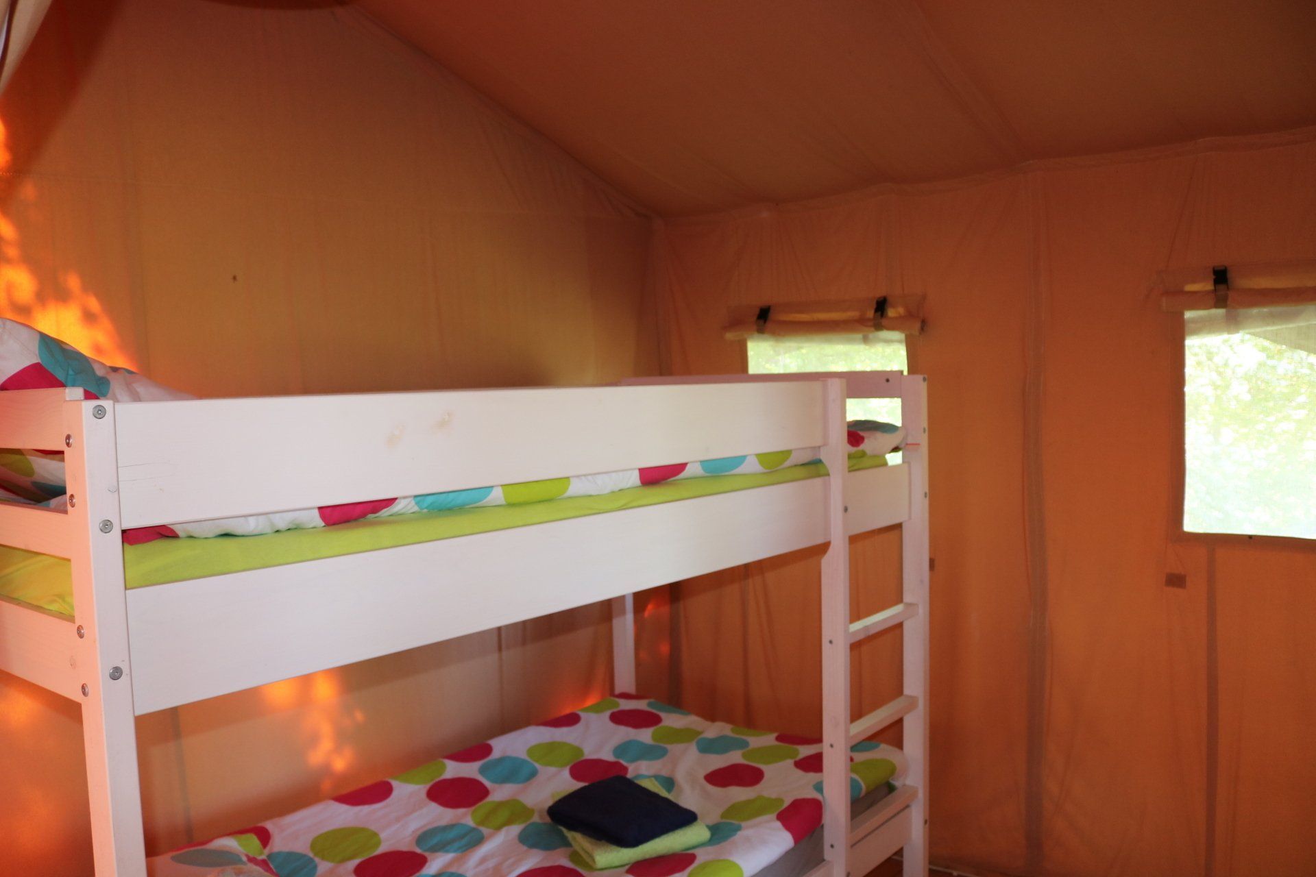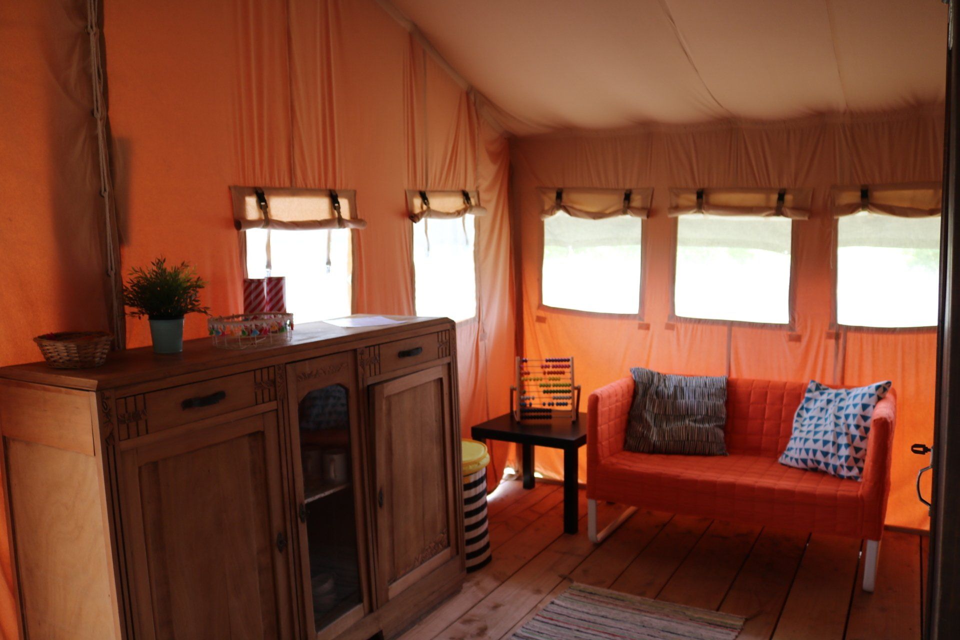 De tenten zijn ingericht met degelijk meubilair, een eenvoudig maar functioneel keukenblokje met kookgerei en goede bedden (tweepersoonsbed 1.60m en stapelbed voor de kinderen). Een extra bed of kinderbedje kan uiteraard worden bijgeplaatst.